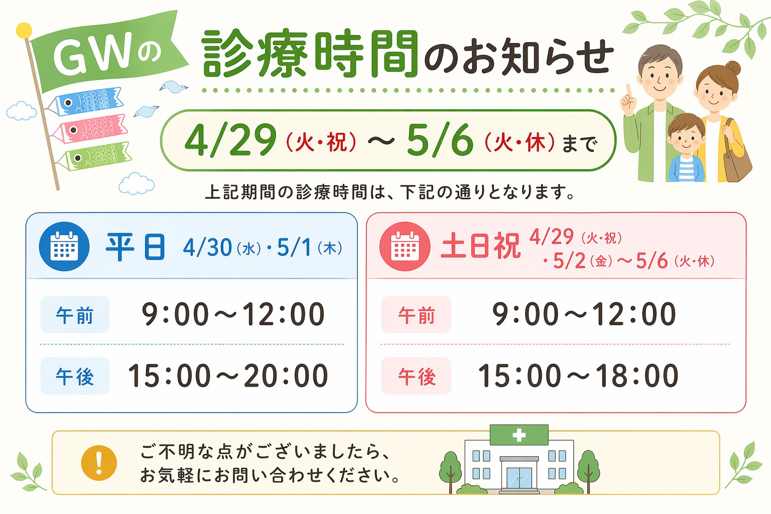 GW休まず診療します!